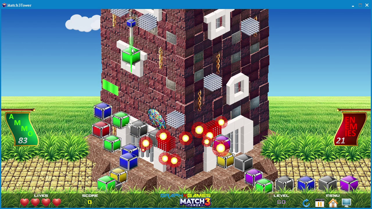 DiamondFalls is a captivating and challenging match-3 puzzle game for enthusiasts of the genre. Players must solve each puzzle by collecting all diamonds and balls of the same color in a specific order within a limited amount of time.
